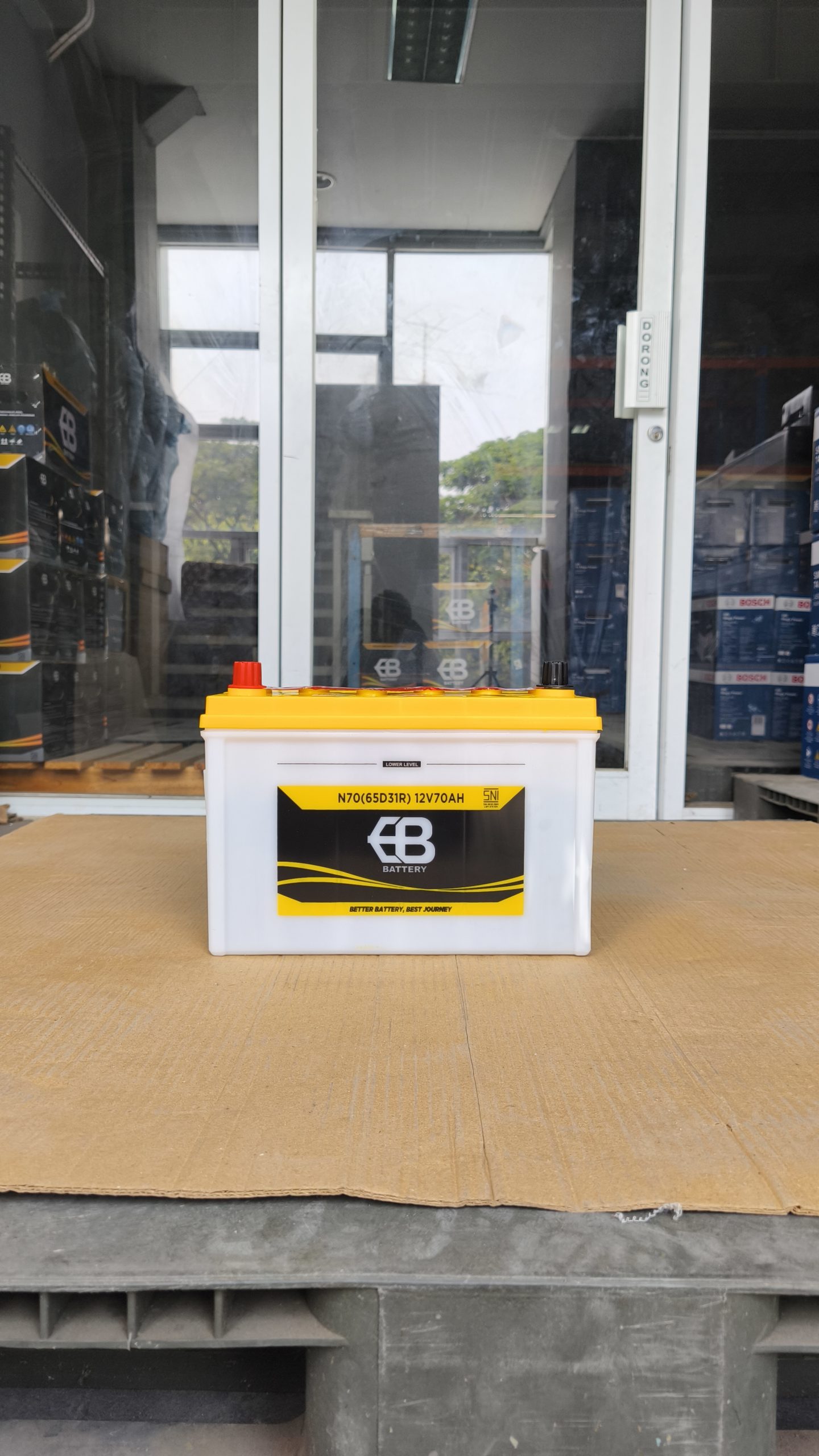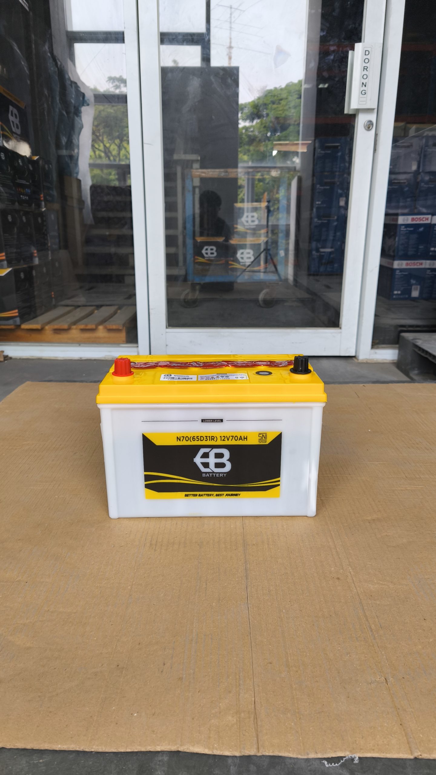 Aki Basah EB N70 (65D31R) hadir sebagai jawaban bagi pemilik kendaraan niaga dan alat berat yang membutuhkan pasokan listrik besar namun tetap efisien secara biaya. Aki ini memiliki kapasitas murni 70 Ampere Hour (Ah), yang sangat ideal untuk menyalakan mesin diesel konvensional yang membutuhkan daya hentak awal (Cranking Amps) yang besar.