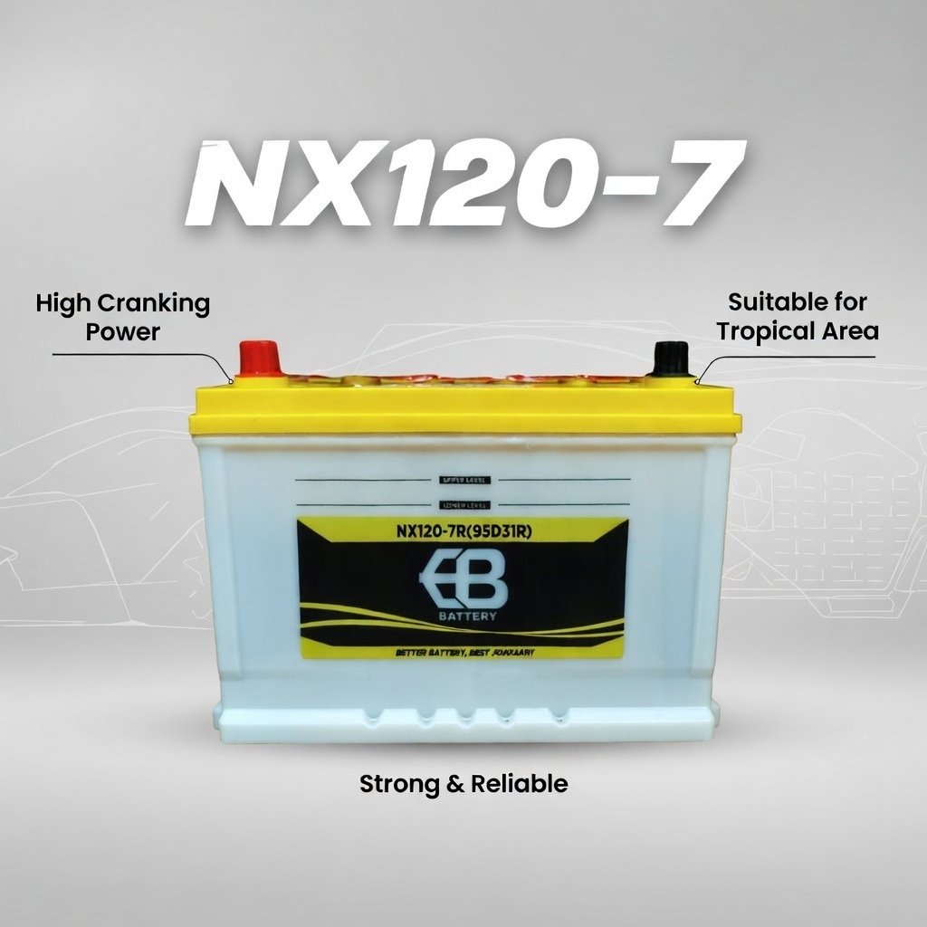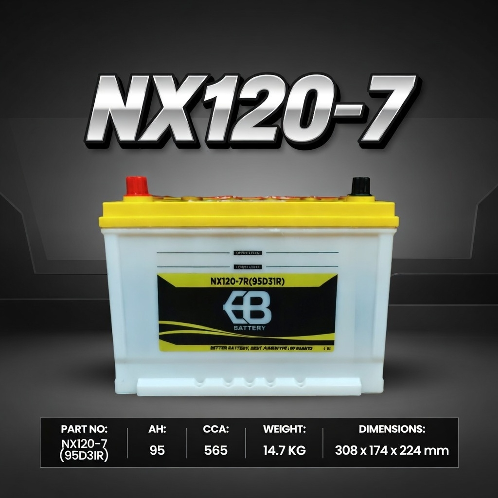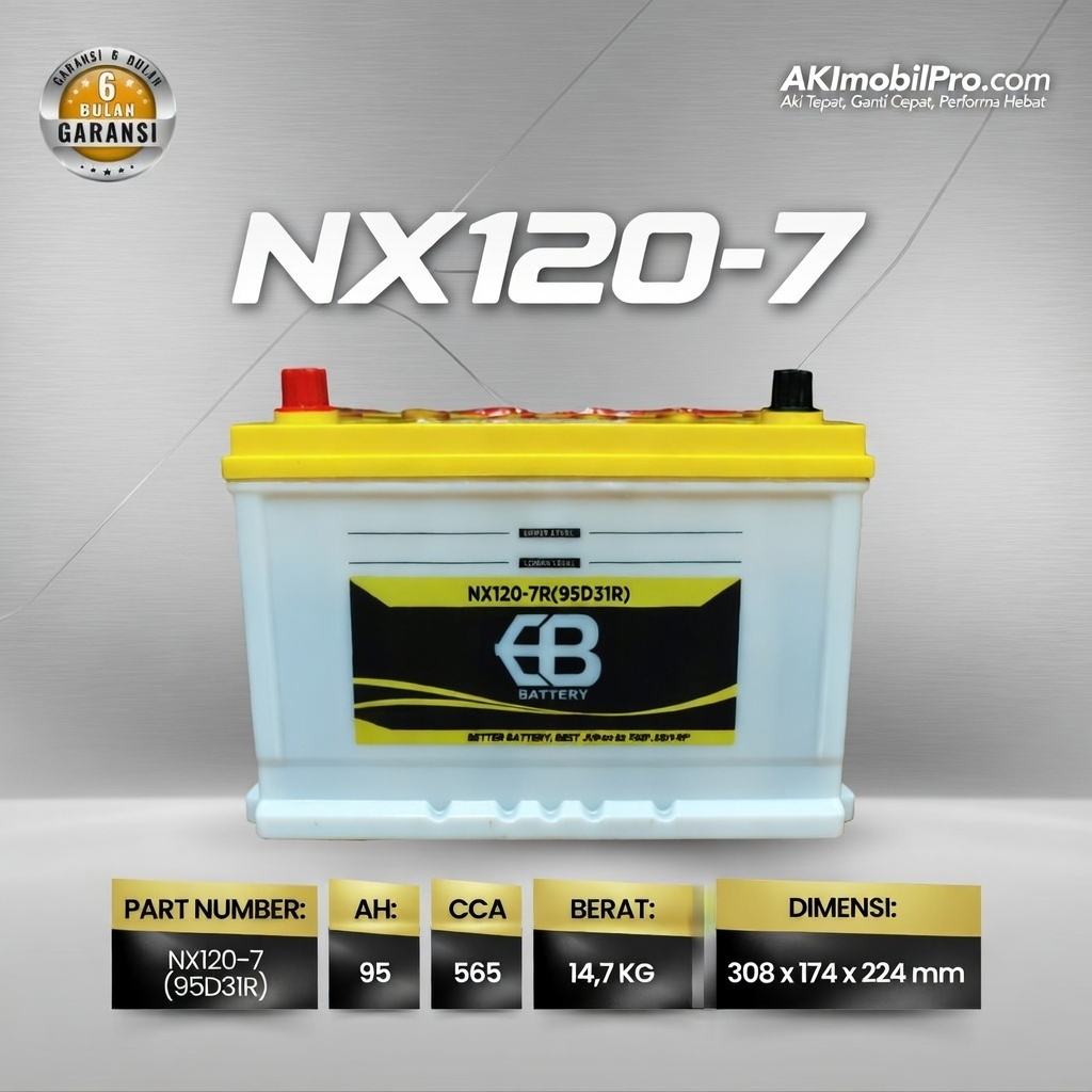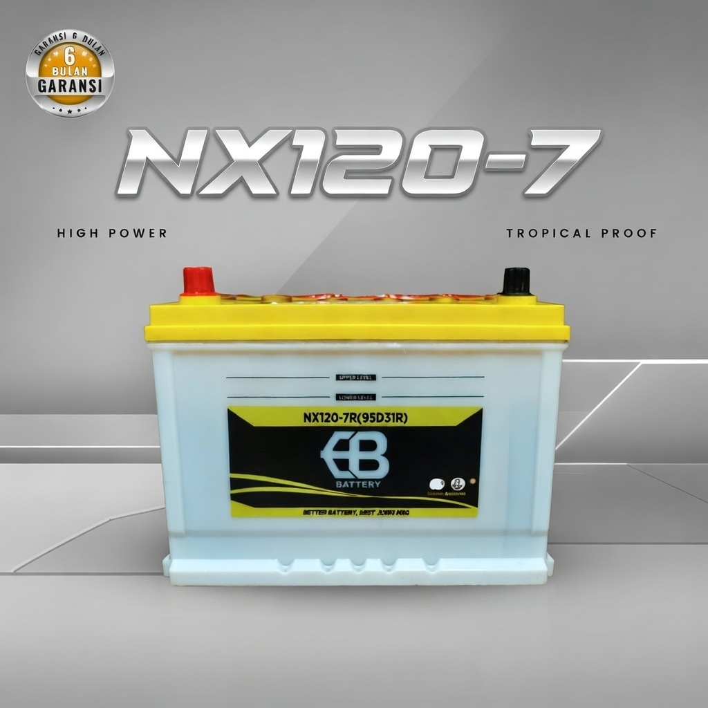 Aki Basah EB NX120-7 (95D31R) adalah “Raja Jalanan” untuk kategori aki konvensional. Jika Anda merasa aki tipe N70 (70Ah) atau N70Z (75Ah) masih kurang bertenaga untuk mobil Anda, maka tipe NX120-7 adalah jawabannya. Produk ini menghadirkan kapasitas murni 95 Ampere Hour (Ah) dalam dimensi yang kompatibel dengan dudukan mobil standar.